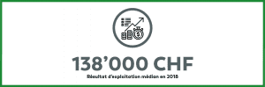 En 2018, le résultat d’exploitation (soit le chiffre d’affaires moins les charges d’exploitation) médian est de 138’000 CHF pour les cabinets médicaux constitués en entreprise individuelle dans le canton de Vaud. Ce résultat est en baisse par rapport au MAS 2017 (143’000 CHF). Ceci pourrait être lié à la baisse de la valeur vaudoise du point TARMED et à l’intervention du Conseil fédéral dans la structure tarifaire TARMED, deux mesures entrées en vigueur en 2018.